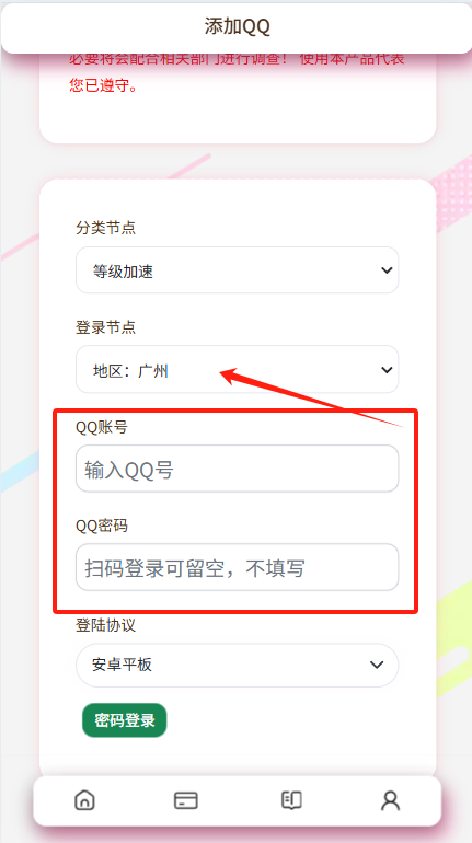 3.成功注册账号后登录平台,选择添加QQ选项。